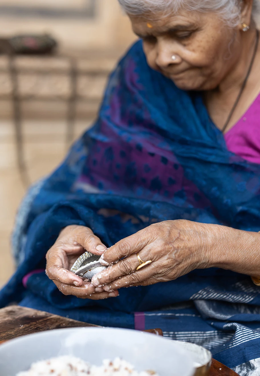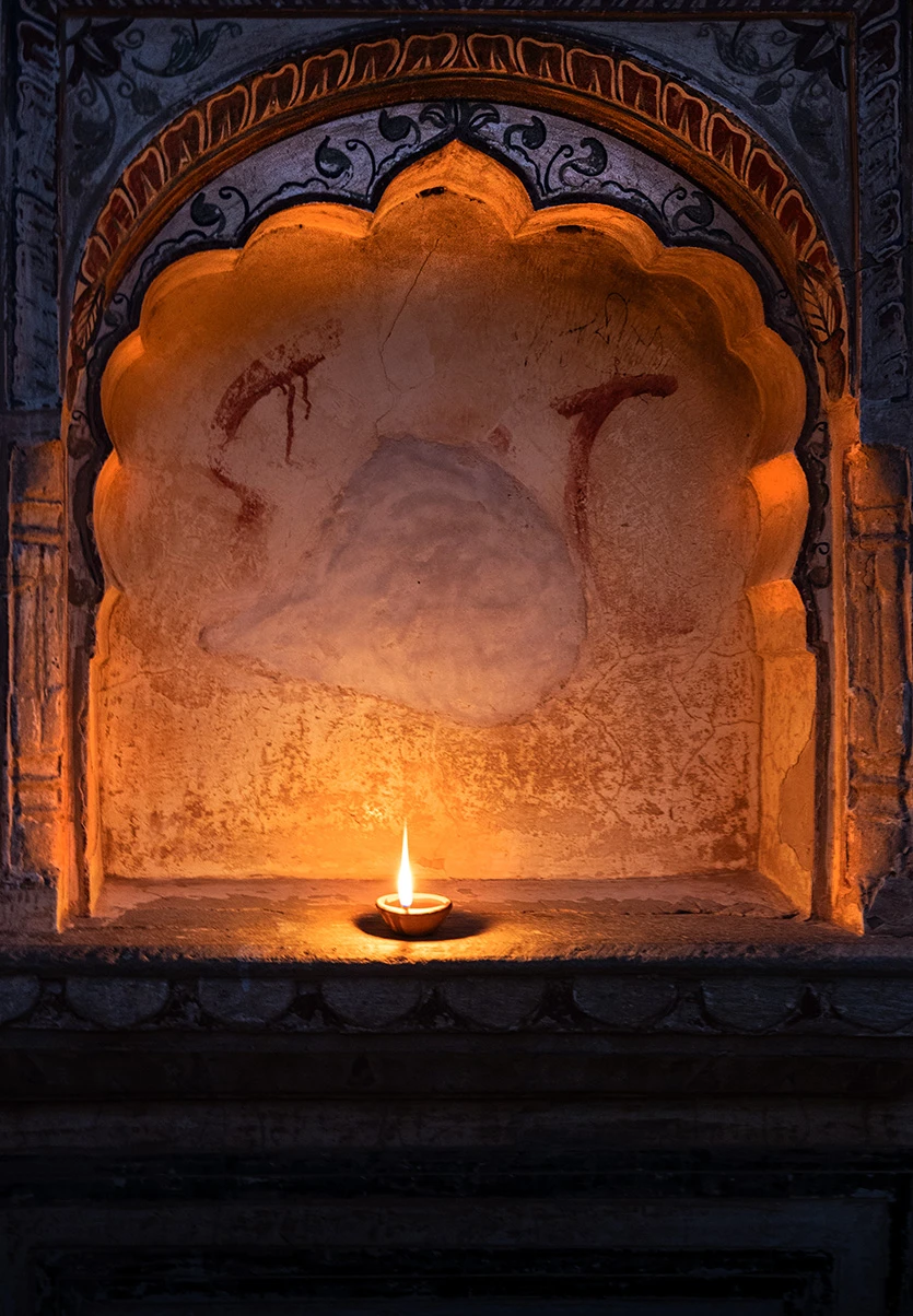 All of these days are celebrated authentically at Mukunda Haveli, preserving the traditional rituals passed down through generations. Diwali is meant to be a festival celebrated at home and Mukunda is a home to many. Scrubbed and polished, the haveli is transformed into a fitting abode for the Gods. It is decorated with endless garlands of marigolds, bundles of sugarcane and chalk motifs are drawn on the floor for auspicious purity